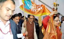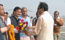 मुख्यमंत्री शिवराज सिंह चौहान का रीवा के चोरहटा हवाई पट्टी पहुंचने