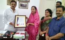 उद्योग मंत्री ने सिंगरौली नगर निगम को प्राप्त आई. एस. ओ. आवार्ड महापौर को सौंपा।
