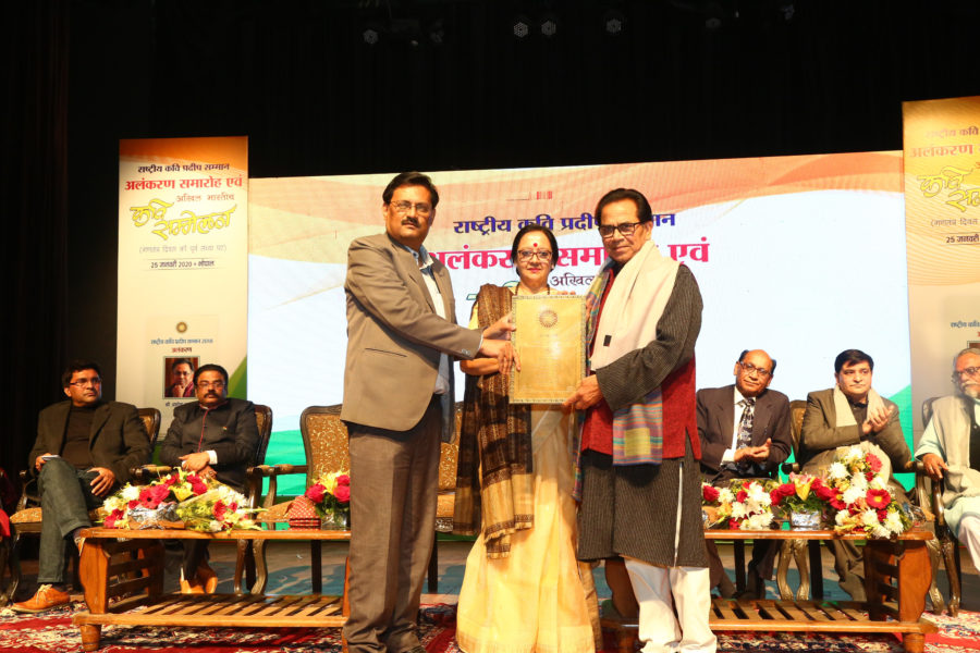 गणतंत्र दिवस की पूर्व संध्या पर संस्कृति विभाग द्वारा रविंद्र भवन में अखिल भारतीय कवि सम्मलेन आयोजित किया गया। इस अवसर पर वरिष्ठ साहित्यकार श्री अशोक चक्रधर, नई दिल्ली को राष्ट्रीय कवि प्रदीप सम्मान 2018 से अलंकृत किया गया। प्रमुख सचिव, संस्कृति श्री पंकज राग ने श्री चक्रधर को सम्मान प्रदान किया। सम्मान-स्वरूप दो लाख रुपए, शाल और प्रशस्ति-पत्र भेंट किया गया। इस अवसर पर कवि स्वर्गीय प्रदीप जी की बिटिया मितुल प्रदीप भी उपस्थित थी।