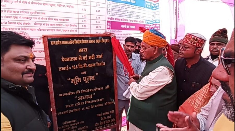 रीवा 24 जनवरी 2023. देवतालाब विधानसभा क्षेत्र के लिये आज का दिन अविस्मरणीय रहेगा जब प्रदेश के विधानसभा अध्यक्ष श्री गिरीश गौतम ने लोक निर्माण विभाग द्वारा बनाई जाने वाली विभिन्न सड़कों का भूमिपूजन किया। उन्होंने नईगढ़ी में देवतालाब से नईगढ़ी तक 3565.45 लाख रूपये से बनाये जाने वाले 16.80 किमी लम्बाई के 6 मीटर से अधिक चौड़ी सड़क मार्ग का भूमिपूजन किया। श्री गौतम ने देवतालाब में शिवपुरा नेबूहा से भुअरी नौढ़िया वाया लौर मार्ग तथा देवतालाब बस स्टैण्ड होकर फोरलेन डिवाइडर सहित 1.50 किमी लम्बाई के तमरी मोड से सोनवर्षा वाईपास तक 1.82 किमी लम्बाई के टू लेन मार्ग लागत 1257 लाख रूपये के सड़क निर्माण कार्य का भूमिपूजन किया।