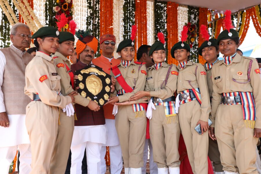 रीवा 26 जनवरी 2025. जिले भर में गणतंत्र दिवस समारोह परम्परागत हर्ष, उल्लास से मनाया गया। पूरे जिले में आन बान शान से तिरंगा लहराया। मुख्य समारोह एस.ए. एफ. मैदान रीवा में आयोजित किया गया। समारोह के मुख्य अतिथि उप मुख्यमंत्री तथा चिकित्सा शिक्षा एवं स्वास्थ्य मंत्री श्री राजेन्द्र शुक्ल ने ध्वजारोहण कर परेड की सलामी ली। इसके बाद मुख्य अतिथि ने प्रदेश की जनता के नाम मुख्यमंत्री डॉ मोहन यादव के संदेश का वाचन किया। मुख्य समारोह के साथ-साथ जिले के सभी कार्यालयों तथा शिक्षण संस्थाओं में भी ध्वजारोहण किया गया। सभी नगर पंचायतों, जनपद पंचायतों तथा ग्राम पंचायतों में समारोह पूर्वक गणतंत्र दिवस मनाया गया।