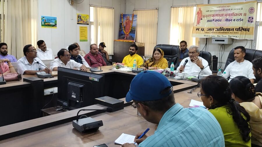 जन अभियान परिषद द्वारा आदि शंकराचार्य के व्याख्यान कार्यक्रम में जुटे विद्वान