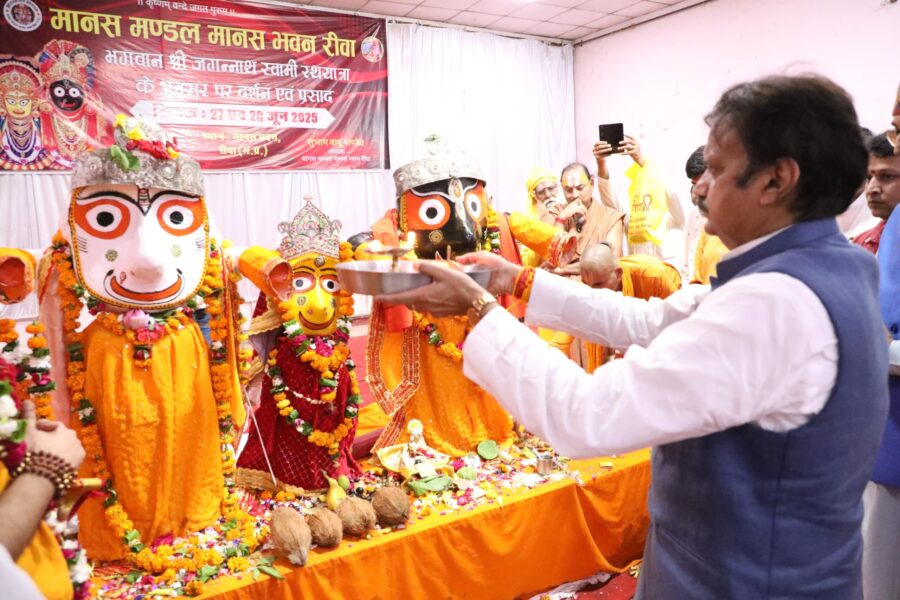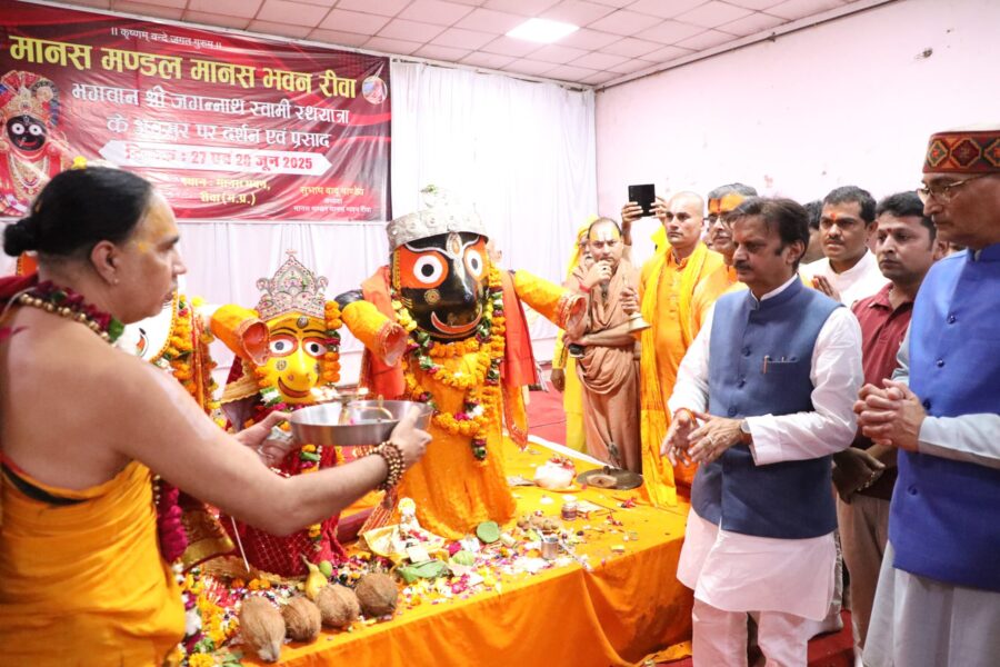 रीवा 28 जून 2025. उप मुख्यमंत्री श्री राजेन्द्र शुक्ल ने मानस भवन में आयोजित रथयात्रा समारोह में भगवान जगन्नाथ स्वामी का दर्शन तथा पूजा-अर्चन किया। उप मुख्यमंत्री ने भगवान की आरती करके विन्ध्य और मध्यप्रदेश के निवासियों के कल्याण की कामना की। इस अवसर पर उप मुख्यमंत्री ने कहा कि हमारे देश में सनातन परंपरा और धार्मिक उत्सव संस्कृति का आधार हैं। इन्हीं से भावी पीढ़ी सुखी होगी। विन्ध्य में वर्ष भर विभिन्न धार्मिक उत्सवों की अनूठी परंपरा है। इनमें हर वर्ग के व्यक्ति उत्साह के साथ भाग लेते हैं। भगवान जगन्नाथ स्वामी की रथयात्रा भी इसी परंपरा का महत्वपूर्ण भाग है। भगवान जगन्नाथ स्वामी के स्वागत में उमड़ा जनसैलाब श्रद्धा का प्रतीक है।