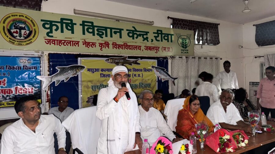 रीवा 10 जुलाई 2025. कृषि विज्ञान केंद्र रीवा में राष्ट्रीय मत्स्य किसान दिवस का आयोजन किया गया। जिसमें रीवा एवं सतना जिले के मत्स्य पालक किसान सम्मिलित हुए। आयोजित कार्यक्रम में रीवा सांसद जनार्दन मिश्रा तथा नर्मदापुरम सांसद दर्शन सिंह चौधरी शामिल हुए। इस अवसर पर उपस्थित लोगों से संवाद करते हुए सांसद दर्शन सिंह चौधरी ने मत्स्य पालन क्षेत्र की प्रगति और मत्स्य पालन क्षेत्र में नए रुझानों, नियमों और उभरते अवसरों के बारे में जानकारी दी। उन्होंने कहा कि सरकार ने मत्स्य पालकों को कृषि का दर्जा दिया है। उन्हें क्रेडिट कार्ड की सुविधा उपलब्ध कराई गई है। मत्स्य पालकों के प्रयास न केवल लाखों लोगों की आजीविका को बनाए रखते हैं बल्कि राष्ट्र के स्थाई जलीय कृषि और अर्थव्यवस्था को बढ़ावा देने में भी महत्वपूर्ण योगदान दे रहे हैं। इस अवसर पर रीवा सांसद जनार्दन मिश्रा ने कहा कि ग्रामीण रोजगार को बढ़ावा देने में महत्वपूर्ण भूमिका निभाने वाले मत्स्य पालकों को प्रोत्साहित करने के लिए राष्ट्रीय मत्स्य किसान दिवस मनाया जाता है। मछली पालन कम लागत में अधिक लाभ देने वाला व्यवसाय है। जल गंगा संवर्धन अभियान में बनाए गए तालाबों से भी मछली पालन को प्रोत्साहन मिलेगा। कार्यक्रम में जिला पंचायत अध्यक्ष श्रीमती नीता कोल, किसान मोर्चा प्रदेश कार्य समिति के सदस्य पुष्पराज सिंह, किसान मोर्चा रीवा अध्यक्ष प्रशांत पाठक किसान मोर्चा सतना अध्यक्ष कृष्णा पांडे भारतीय कृषि अनुसंधान परिषद सदस्य नीतिराज सिंह पटेल शैलेंद्र तिवारी, उप संचालक डॉ अंजना सिंह सहित कृषि वैज्ञानिकों तथा बड़ी संख्या में मछली पालक किसान उपस्थित रहे।