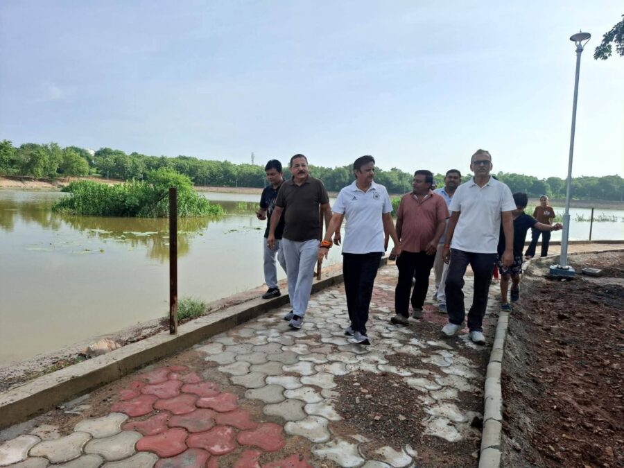 रीवा 18 जुलाई 2025. उप मुख्यमंत्री श्री राजेन्द्र शुक्ल ने सुबह विश्वविद्यालय के समीप भ्रमण के दौरान निर्माणाधीन झलबदरी तालाब के सौंदर्यीकरण कार्य का निरीक्षण किया। उन्होंने कार्य की प्रगति की समीक्षा करते हुए उपस्थित अधिकारियों एवं निर्माण एजेंसी के प्रतिनिधियों को कार्य की गुणवत्ता सुनिश्चित करने, तय समय सीमा में कार्य पूण करने तथा तालाब क्षेत्र को स्वच्छ, आकर्षक एवं जन सुविधाओं से युक्त विकसित करने के संबंध में आवश्यक निर्देश दिए।