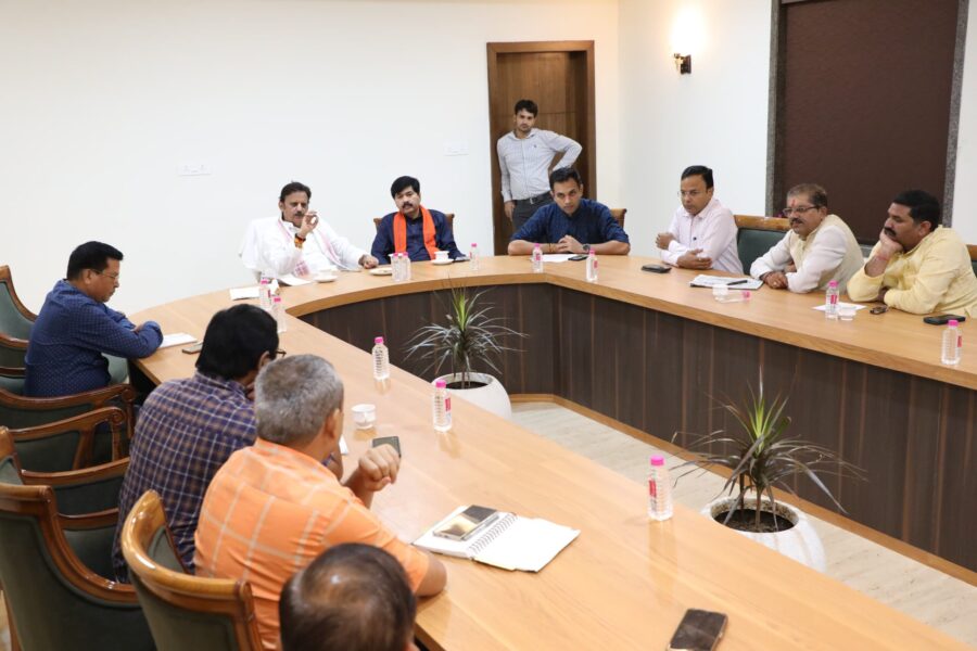 रीवा 03 अगस्त 2025. उप मुख्यमंत्री श्री राजेन्द्र शुक्ल ने हिनौती गौधाम में निर्माणाधीन कार्यों को शीघ्र पूर्ण करने के निर्देश देते हुए वृक्षारोपण के कार्य को आगामी 15 दिवस में पूरा कराने की बात कही। नवीन सर्किट हाउस में आयोजित बैठक में उप मुख्यमंत्री ने हिनौती गौधाम में भूसा शेड, गौवंश शेड तथा प्रशासनिक भवन के निर्माण कार्य की अद्यतन स्थिति की जानकारी ली। उन्होंने निर्देशित किया कि प्रशासनिक भवन का कार्य अगस्त माह में पूर्ण कर लिया जाए साथ ही हिनौती गौधाम में फेंशिंग का शेष कार्य शीघ्र पूर्ण कराया जाए। उन्होंने गौधाम में 5 हजार वृक्षों के रोपण का कार्य आगामी 15 दिन में पूरा करने के निर्देश दिए तथा कहा कि इनकी सुरक्षा की व्यवस्था सुनिश्चित कराई जाए। बैठक में आयुक्त नगर निगम डॉ सौरभ सोनवड़े, डीएफओ लोकेश निरापुरे, एसडीएम पीके पाण्डेय, कटनी के पूर्व महापौर शशांक श्रीवास्तव, गौ संवर्धन बोर्ड के पूर्व उपाध्यक्ष राजेश पाण्डेय, जनपद अध्यक्ष विकास तिवारी, डॉ संजय सिंह उपस्थित रहे।