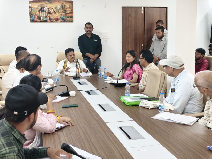 बसामन मामा गौवंश वन्य विहार के प्रशासनिक भवन सभागार में आयोजित बैठक में उप मुख्यमंत्री ने कहा कि यह किसान सम्मेलन ऐतिहासिक होगा। इसके लिए अभी से सभी तैयारियाँ और व्यवस्थाएं प्रारंभ कर दें। उन्होंने गौवंश वन्य विहार में निर्माणाधीन कार्यों के शीघ्र भुगतान के निर्देश देते हुए अपूर्ण कार्यों को शीघ्र पूर्ण करने के निर्देश दिए। उन्होंने कहा कि सेमरिया मार्ग से गौवंश वन्य विहार तक के पहुंच मार्ग का निर्माण कार्य शीघ्र प्रारंभ कराया जाएगा। उप मुख्यमंत्री ने गौवंश वन्य विहार का भ्रमण कर निर्माणाधीन कार्यों का निरीक्षण किया। इस दौरान पूर्व विधायक श्री केपी त्रिपाठी, अमित अभय रामदास, एसडीएम दृष्टि जायसवाल, उप संचालक कृषि यूपी बागरी, उप संचालक पशुपालन डॉ डीपी सिंह सहित संबंधित विभागीय अधिकारी उपस्थित रहे।