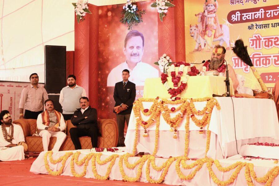 कथा में जगदगुरू श्री राजेंद्रदास जी महाराज ने कहा कि वर्तमान समय में समाज की दुर्दशा का मूल कारण गौवंश की उपेक्षा है। उन्होंने कहा कि भौतिक संपत्ति असुरों के पास भी थी, किंतु वह आसुरी संपत्ति थी, दैवीय संपत्ति नहीं। आसुरी संपत्ति मनुष्य को संसार के मोहजाल में फँसाती है, जबकि दैवीय संपत्ति उसे मोक्ष के मार्ग पर अग्रसर करती है। महाराज जी ने गौ सेवा को सच्ची समृद्धि का आधार बताते हुए कहा कि गौ माता की सेवा से बुद्धि निर्मल होती है, जीवन में सुख-शांति आती है और व्यक्ति के समस्त अशुभ कर्म सहज ही क्षीण हो जाते हैं। उन्होंने यह भी कहा कि धरती का कल्याण गौ संरक्षण से ही संभव है तथा गौ आधारित प्राकृतिक खेती ही आने वाले समय का सतत और सात्विक समाधान है। गौमाता धरती का चलता फिरता कल्पवृक्ष है जो सबकी कामनाओं की पूर्ति करती हैं।