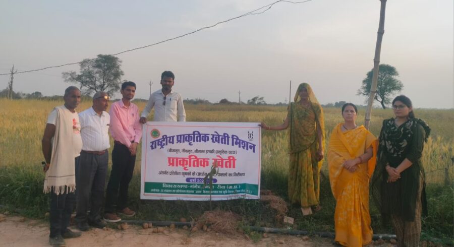 रीवा 21 मार्च 2026. कलेक्टर श्रीमती प्रतिभा पाल के मार्गदर्शन मे आत्मा परियोजना के तकनिकी दल द्वारा भ्रमण का आयोजन किया गया। राष्ट्रीय प्राकृतिक खेती मिशन भारत सरकार की महत्वपूर्ण योजना है जिसका क्रियान्वयन आत्मा परियोजना द्वारा विकास खंड गंगेव के प्राकृतिक खेती कलस्टर खरहरी अंतर्गत बेलवाबड़गयान, बेलवा कुर्मीयान, खरहरी ग्राम पंचायत मे किया जा रहा है। इसका उद्देश्य कलस्टर ग्रामो में रसायन-मुक्त और टिकाऊ खेती को बढ़ावा देना है साथ ही परिवार के लिए पौष्टिक भोजन और किसानों की लागत कम करना है। श्रीमती सुनीता प्रजापति जो ग्राम बेलवाबड़गयान विकास खंड गंगेव की क़ृषि सखी है वह प्राकृतिक खेती अंतर्गत सब्जियों की पोषण वाटिका मे फूलगोभी, पत्तागोभी, टमाटर, मिर्च, पालक, भिंडी की जैविक खेती कर रही हैं एवं उद्यानिकी फसलों मे आम के 100 पौधे का रोपण कर एक बगिया माँ के नाम योजनान्तर्गत कर जैविक खाद से पोषक तत्वों से पूर्ति की हैं साथ ही पशुपालन अंतर्गत देशी गाय एवं बकरी भी पाली हैं जिससे गोबर और गौ-मूत्र की प्राप्ति होता है। भ्रमण कार्यक्रम मे विपिन तिवारी, मुकेश, गेन्दलाल प्रजापति, आशा प्रजापति, श्रीमती प्रेमा प्रजापति एवं अन्य पंजीकृत कृषको एवं महिलाओ की उपस्थिति रही। जो स्वयं भी आत्मनिर्भर हो रही हैं।