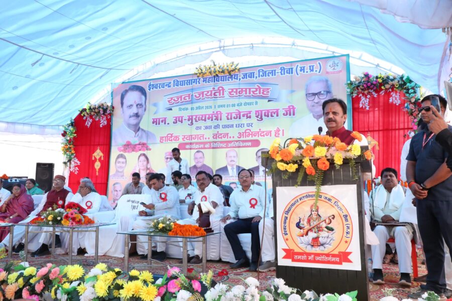 रीवा 05 अप्रैल 2026. उप मुख्यमंत्री श्री राजेन्द्र शुक्ल ने कहा कि संस्कारयुक्त शिक्षा से ही मानव जाति का कल्याण व क्षेत्र विकास संभव है। इस महाविद्यालय की स्थापना पवित्र उद्देश्य से की गई थी। महाविद्यालय उत्तरोत्तर प्रगति करे व क्षेत्र में उच्च शिक्षा के विकास में अपना योगदान दे। उप मुख्यमंत्री जवा में ईश्वरचन्द्र विद्यासागर महाविद्यालय के रजत जयंती समारोह में शामिल हुए।