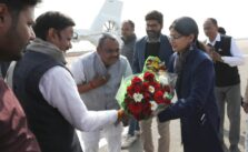 उप मुख्यमंत्री श्री शुक्ल पहुंचे रीवा हवाई पट्टी पर जनप्रतिनिधियों एवं