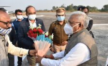 राज्यपाल श्री पटेल का रीवा हवाई पट्टी में किया गया स्वागत